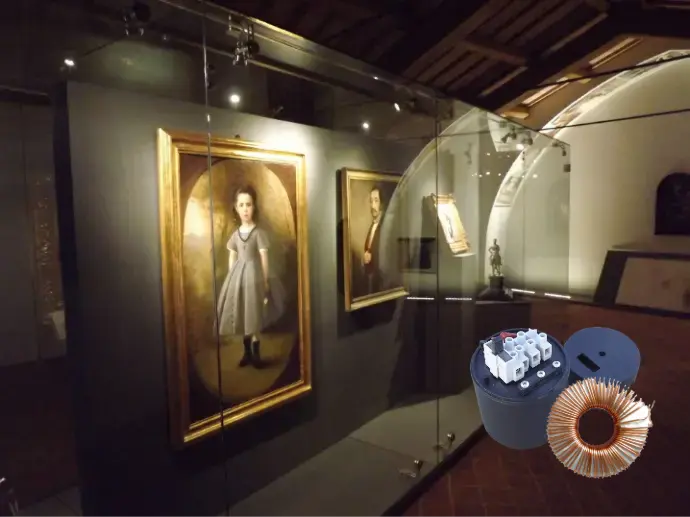 Thanks to their geometric configuration, toroids emit a very low magnetic field, reducing the risk of interference with other electronic devices present in the environment. This is crucial, for example, in museums and archives, where lighting, air conditioning and monitoring systems must coexist without adversely affecting each other.